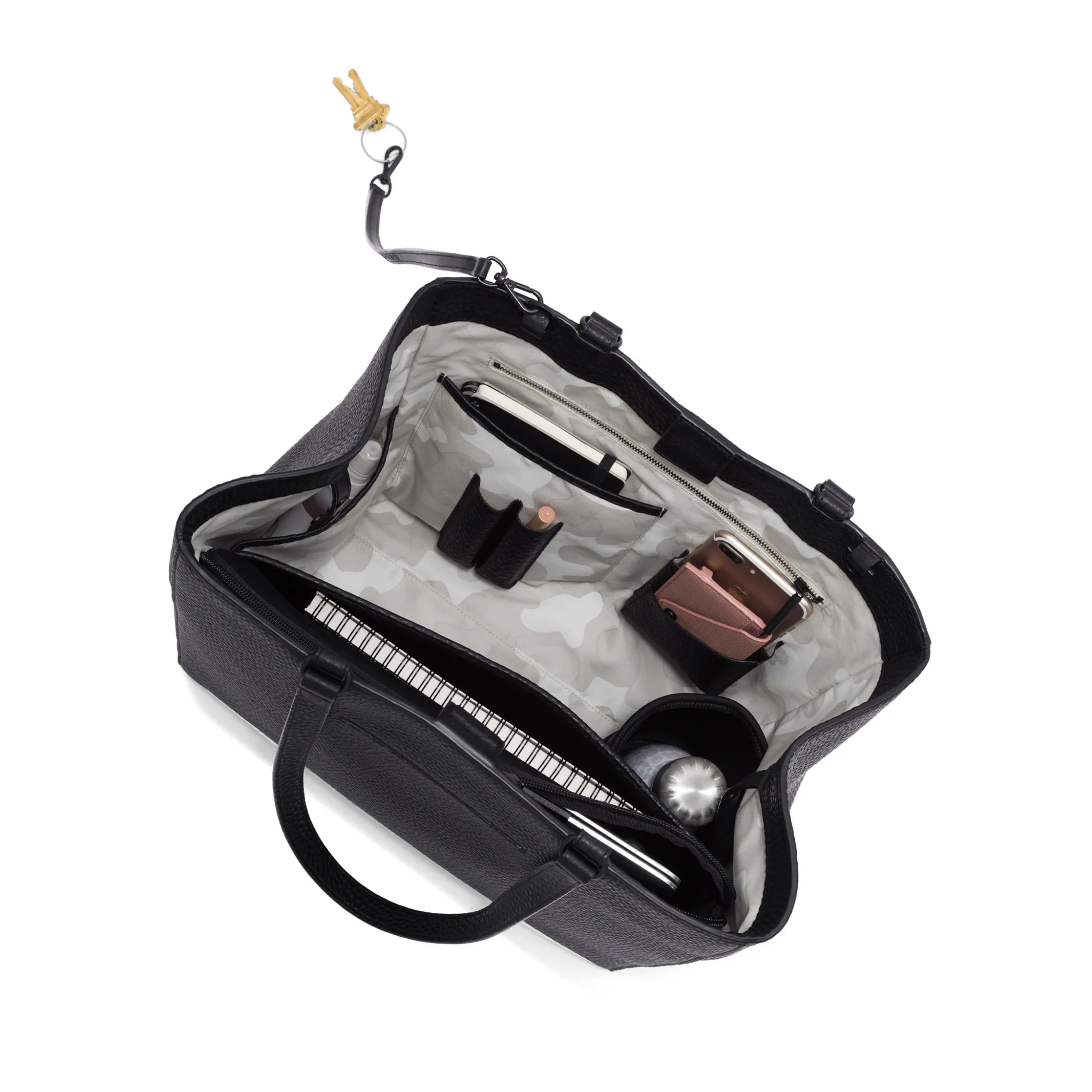 Meet the elevated upgrade to our signature tote. Inspired by late nights at the office and impromptu weekend adventures, the black Allyn Tote will elevate your style as fast as you can grab your phone from the exterior slip pocket. While the magnetic tab closure gives you more space when you need it, the interior snap fastener provides additional security and an alternative way to carry. A neoprene laptop sleeve and bottle holder ensure your things are always protected, while thoughtful interior pockets keep everything organized and ready to go.