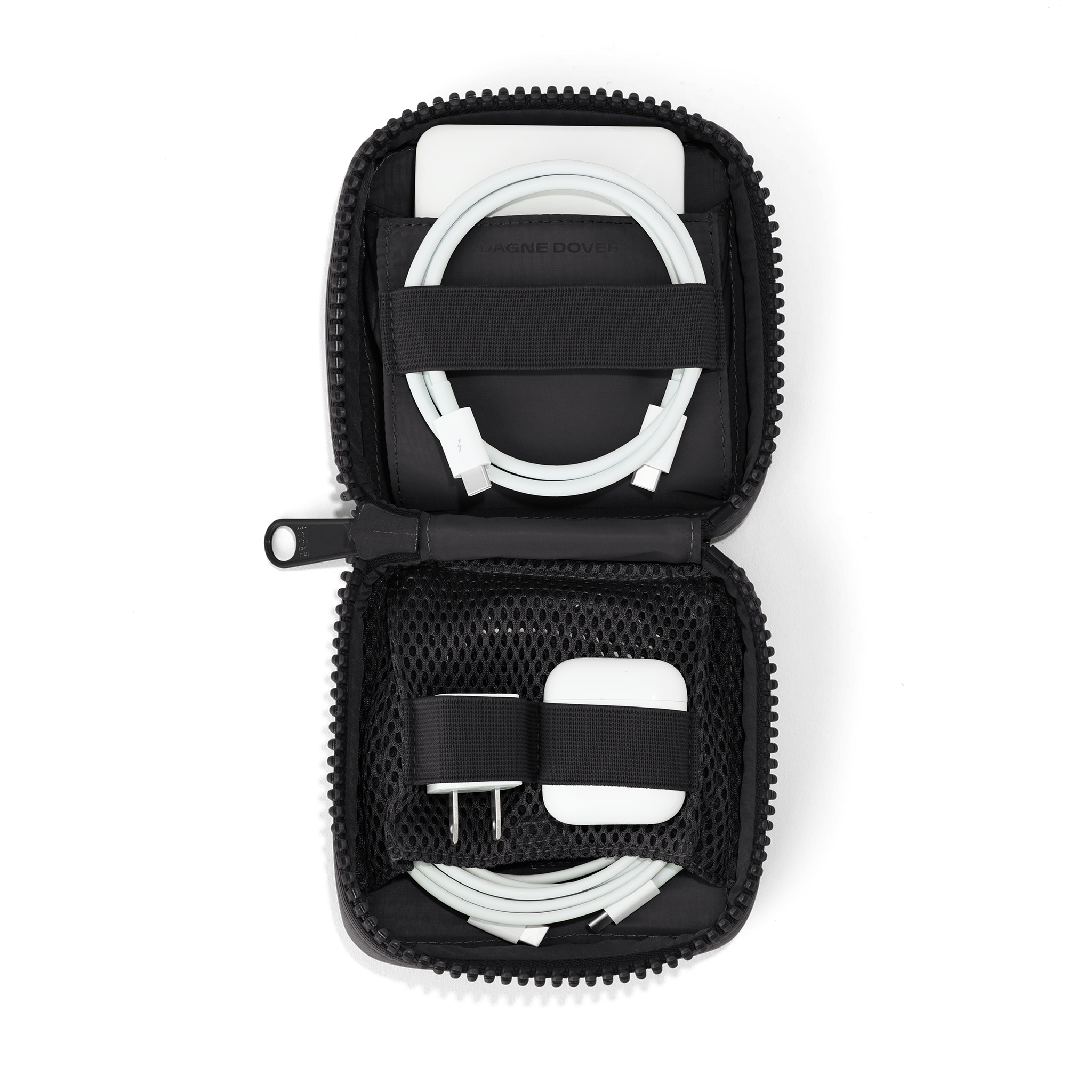 The Small Arlo Tech Pouch translates to, “Welcome home, cords.” Never again will cords find themselves lonely and tangled at the bottom of your bag. The Small Arlo was designed with elastic loops to efficiently and effectively store cords, smaller chargers, and other tech accessories (or techcessories, as we like to say). And should you need even more storage, theres an exterior Airmesh slip pocket so no random knick knack gets left behind.