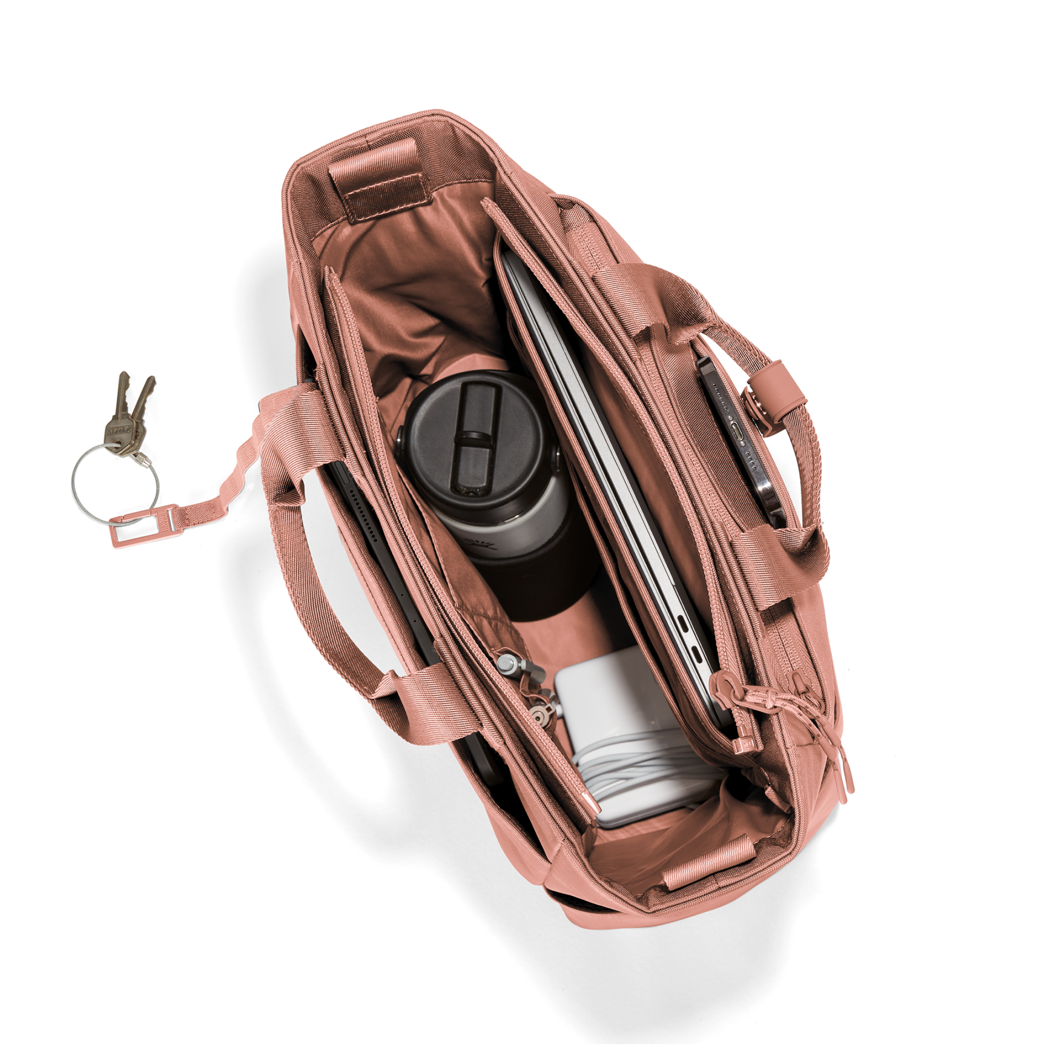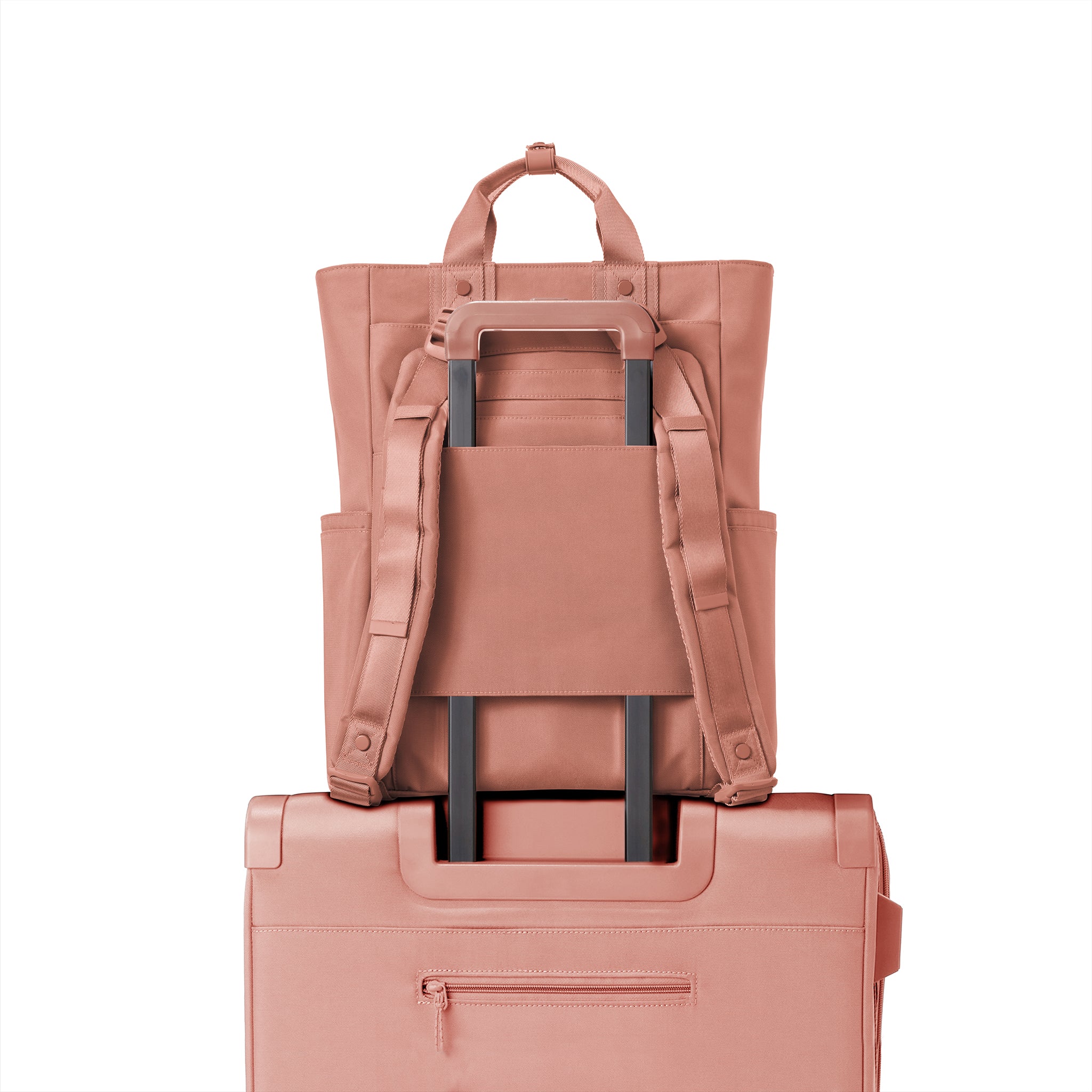Go hands free (or not) with the convertible pink backpack tote that loves a good adventure. Float through the airport with this travel tote backpack on your shoulder, back, or just grab the top handles and go. You’ll always know where your passport, laptop, and travel essentials are with this smartly designed, shapeshifting tote that’s ready to see the world with you. Organized. Recycled. Durable.