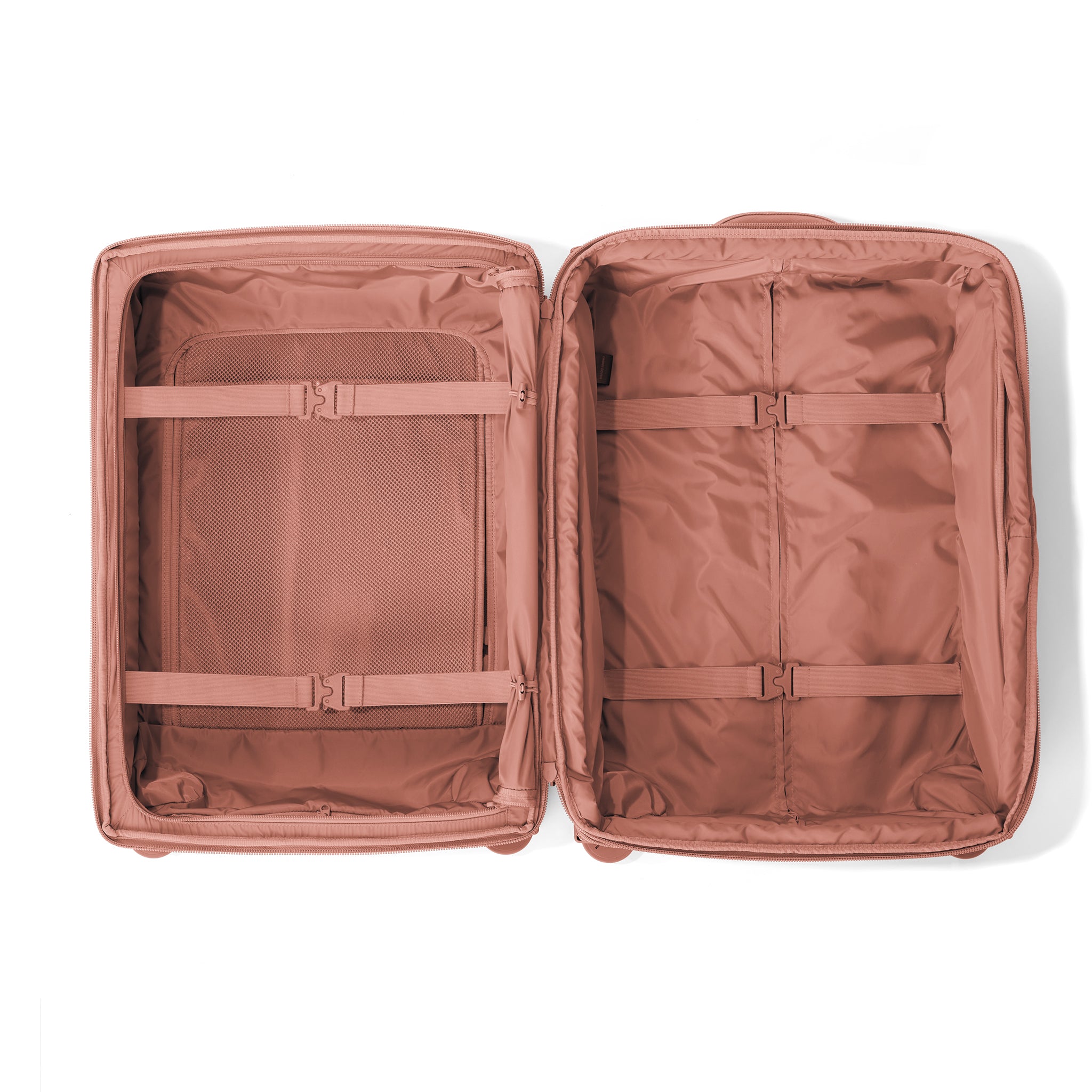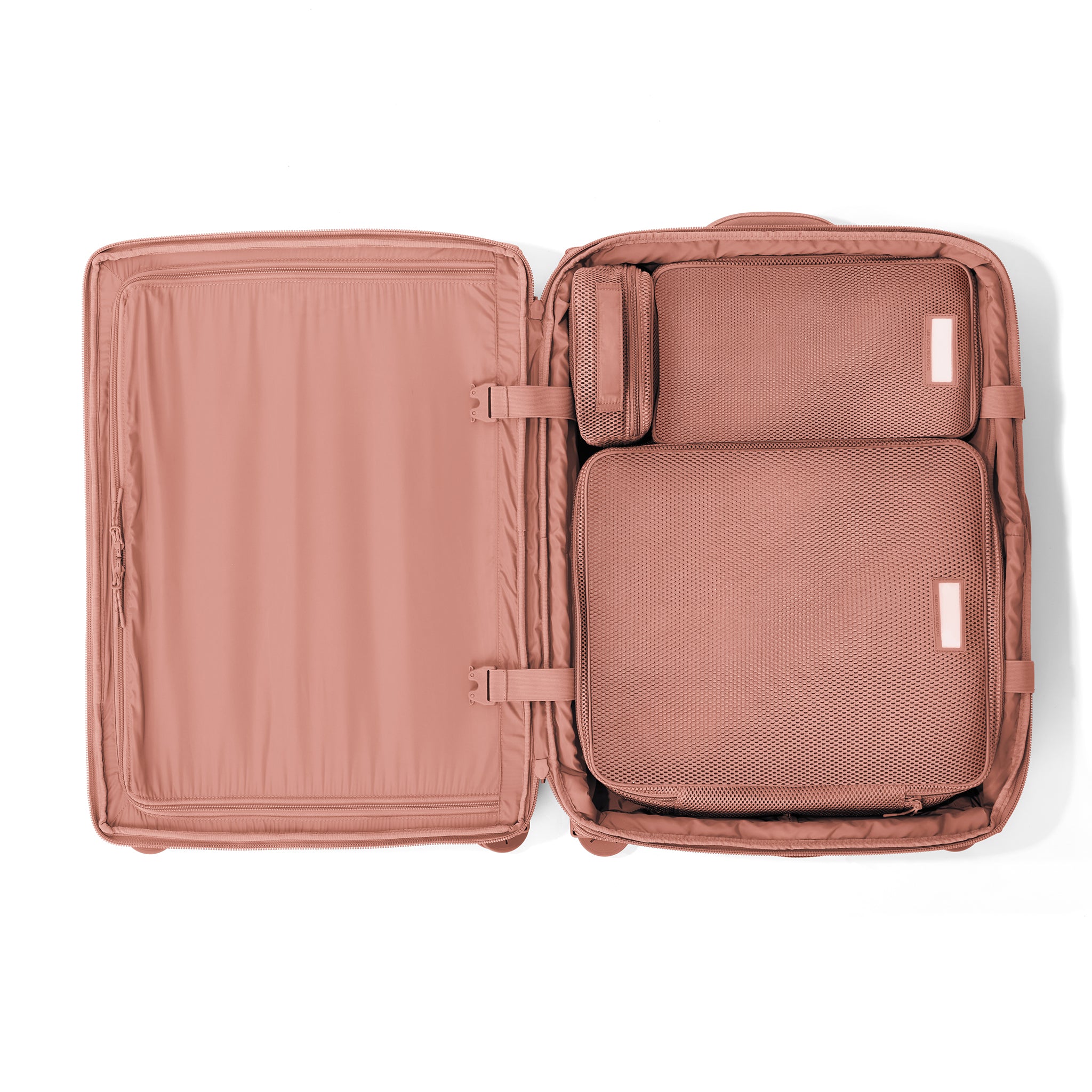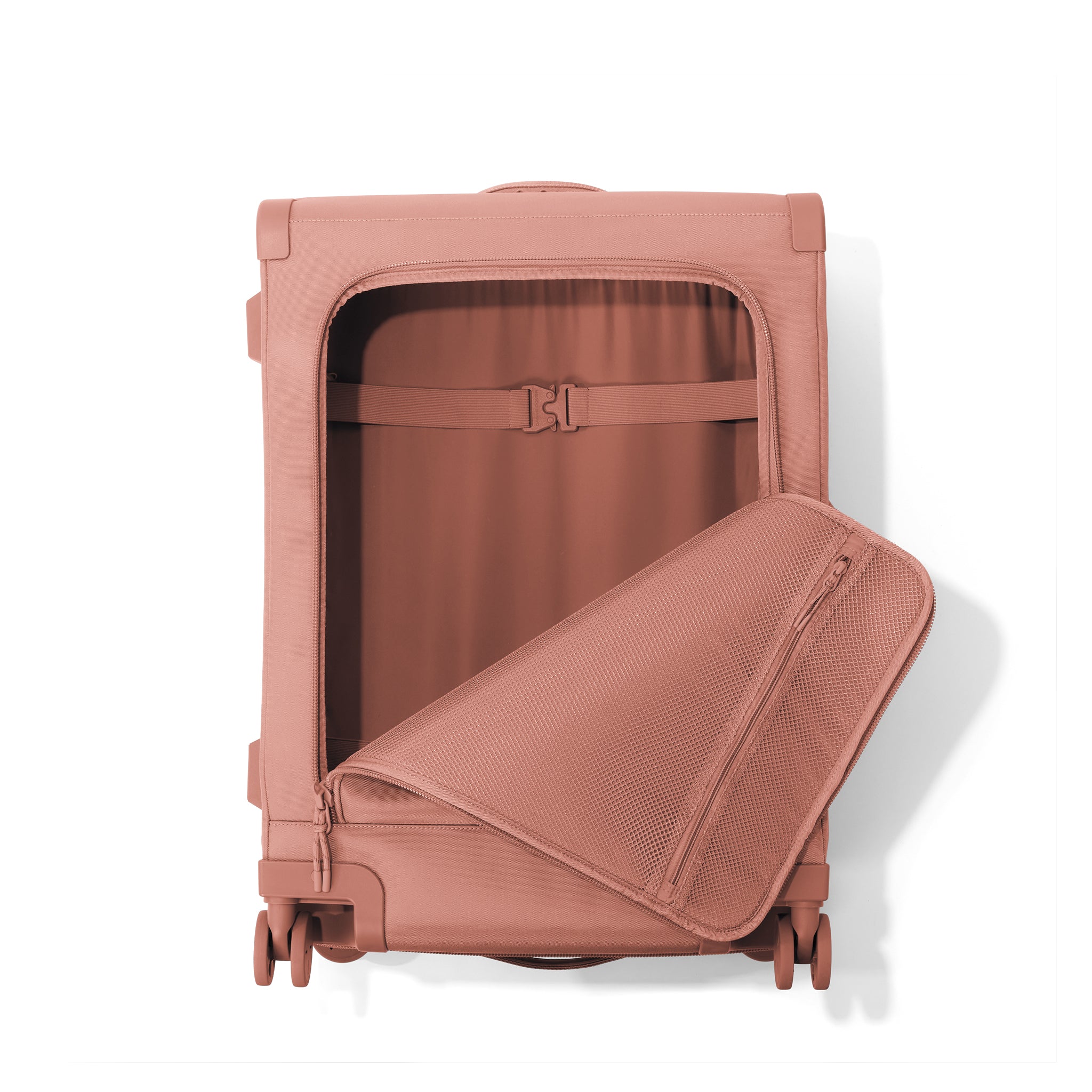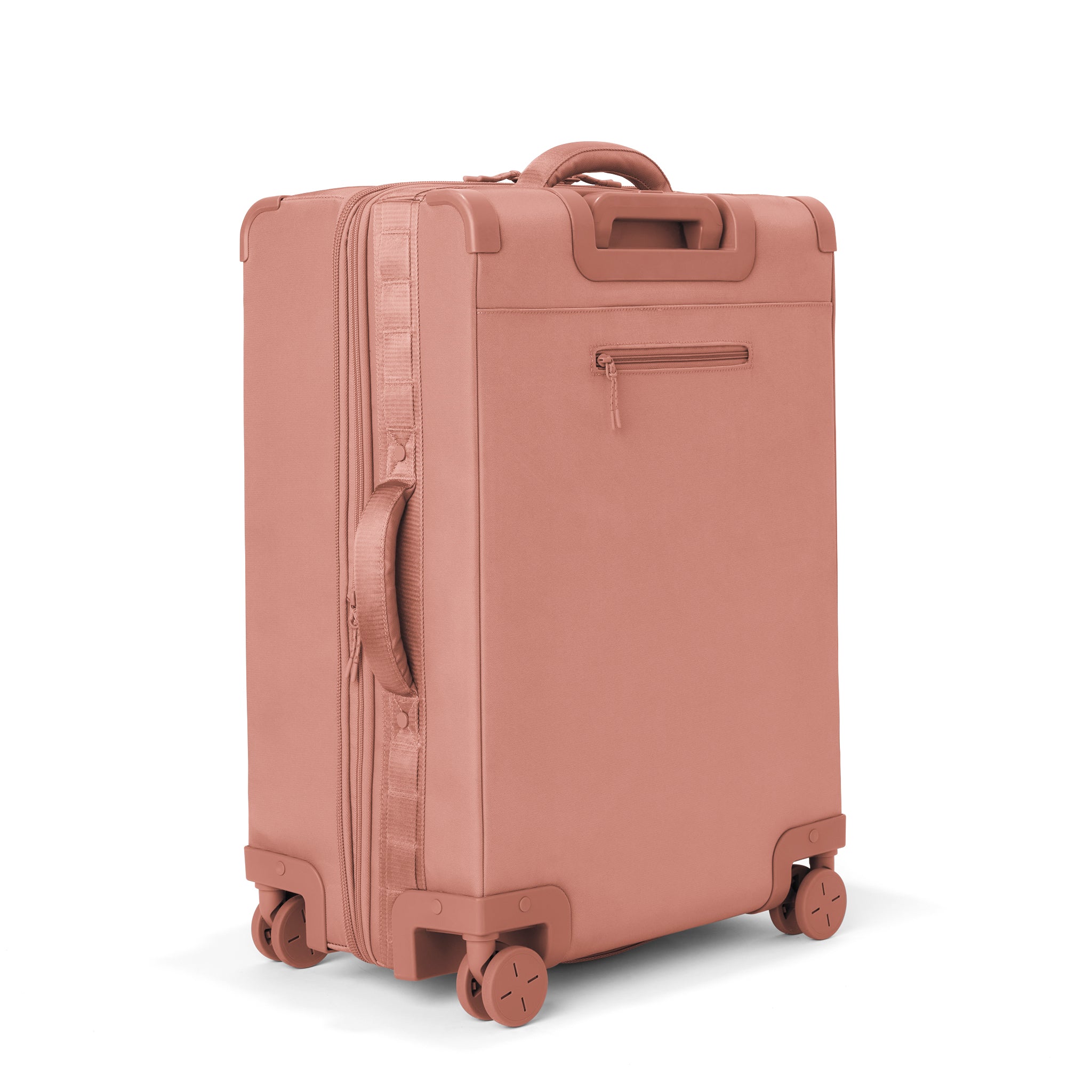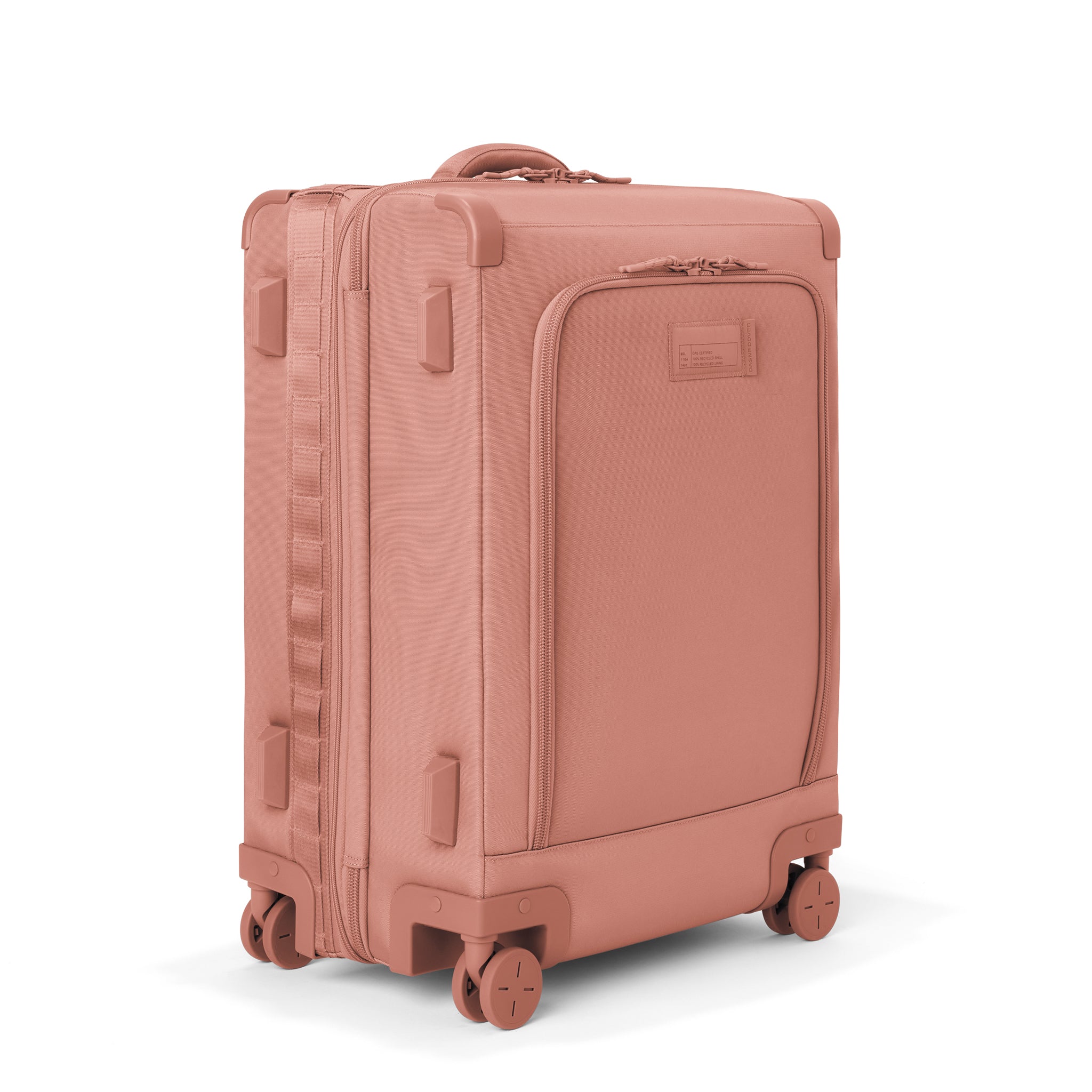 By looking at capacity, maneuverability, and durability, the designers here at Dagne Dover perfected this smaller pink checked luggage to fit the needs of everyone.